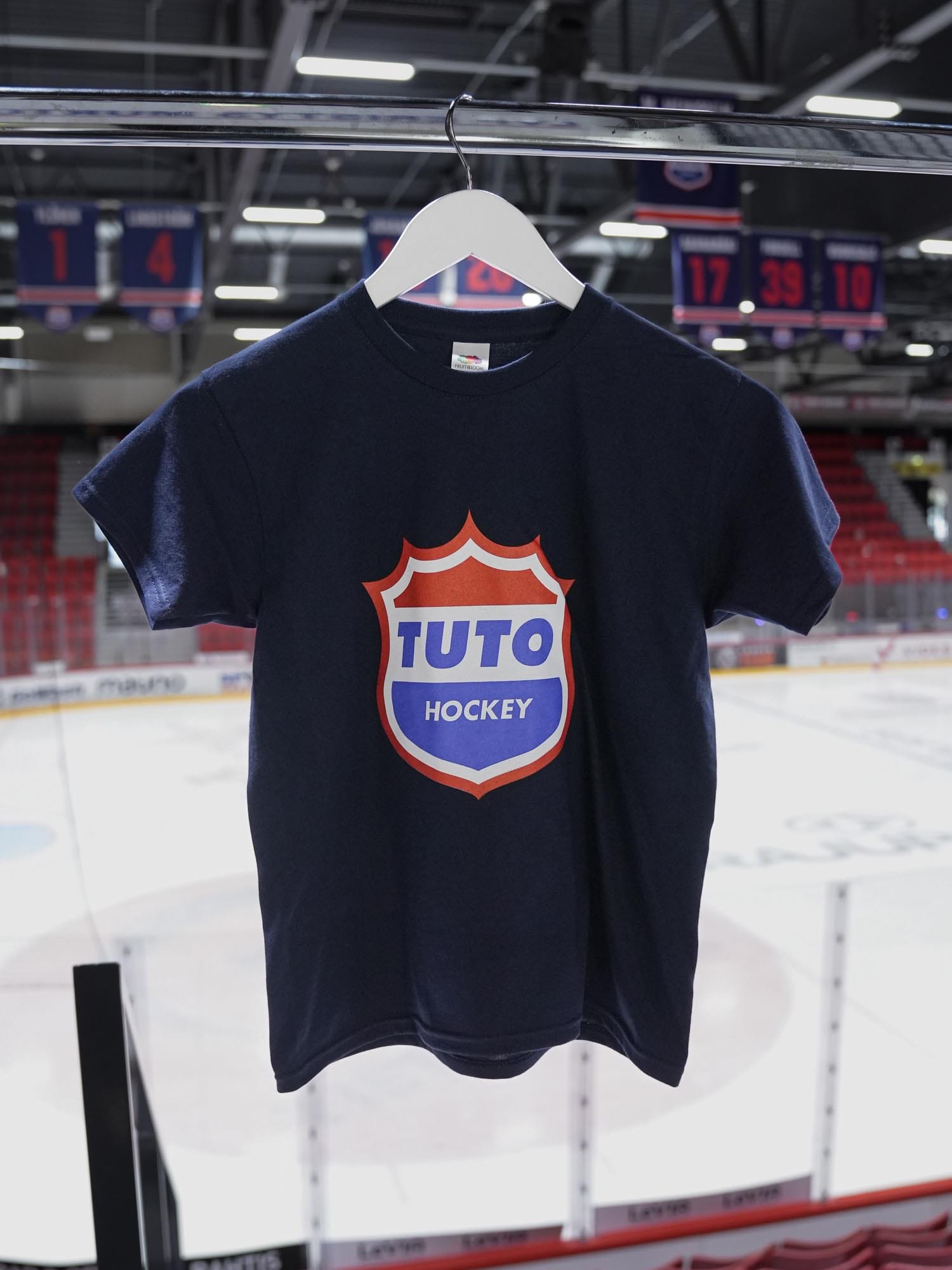 Lasten TUTO t-paita painatuksella. Paidan etupuolella TUTO-logo ja takana Karnaranta 22.
