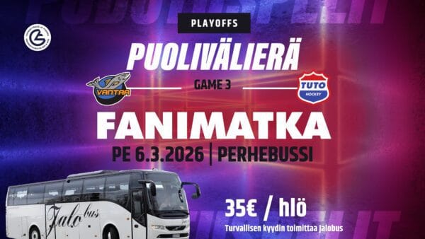 Hinta: 35€ / hlö (sisältää bussikyydityksen Turku – Vantaa – Turku, sekä ottelulipun)